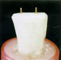 de timol, e depois incluídos por suas raízes em resina plástica